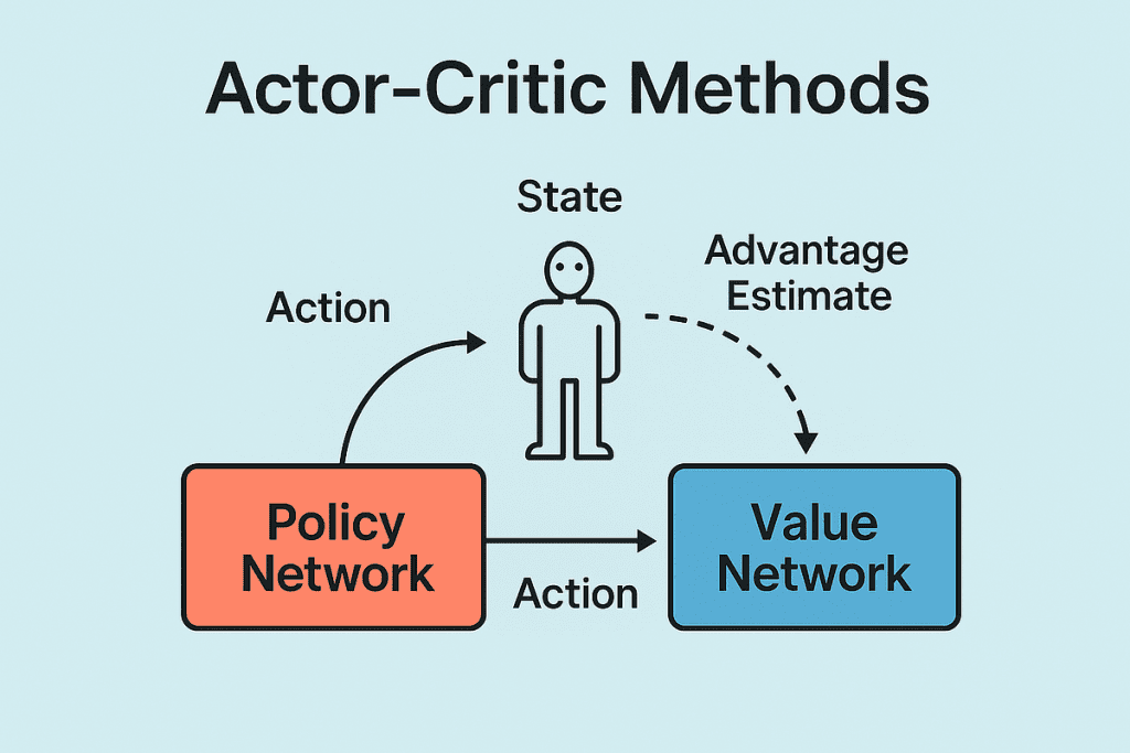 Pure policy gradient methods update the policy by increasing the probability of actions that produced higher returns. This can work, but it often has high variance. High variance means training can be unstable, especially in complex environments.